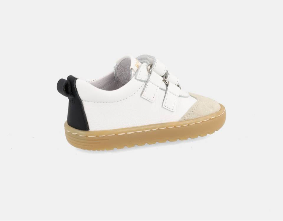 Fecha com duplo velcro, facilitando o calçar e promovendo a autonomia das crianças. A palmilha é totalmente removível e sem elementos anatómicos.