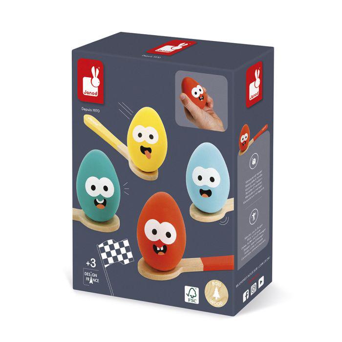 Quem nunca participou numa corrida de ovo e colher? Preparar, apontar… já! Nesta divertida corrida, a destreza e a rapidez serão essenciais para chegar à meta com o ovo ainda na colher. Segura bem a colher com o engraçado ovo de madeira e corre para a linha de chegada! Este jogo de habilidade é perfeito para aniversários ou festas com amigos, garantindo momentos de riso e partilha. Com ovos de madeira, a melhor parte para os adultos é que não há confusão para limpar no final! O conjunto inclui 4 ovos de madeira (6 x 4,5 cm) e 4 colheres de madeira (13 x 5 cm), sendo adequado para crianças a partir dos 3 anos.