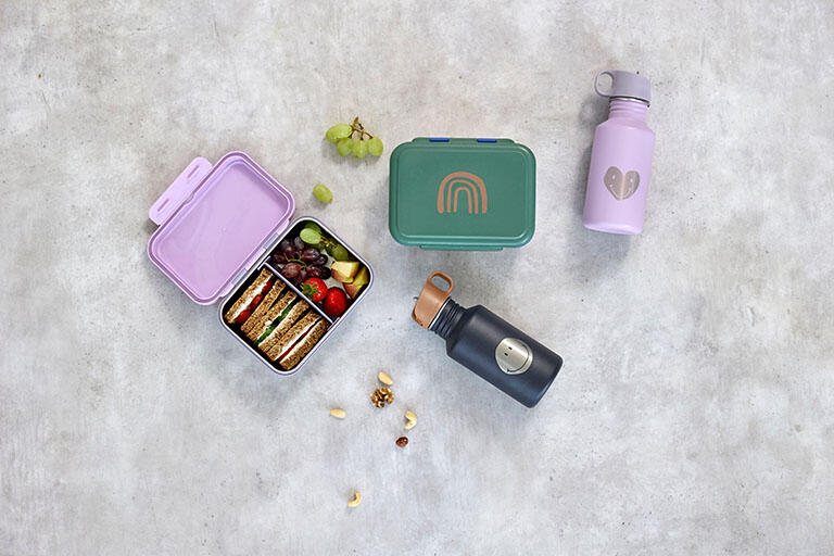 A robusta garrafa de aço inoxidável LÄSSIG (500 ml), sem BPA, com tampa desportiva prática da coleção Little Gang, é resistente a quebras e fugas. É adequada para bebidas sem gás, mornas e frias.
