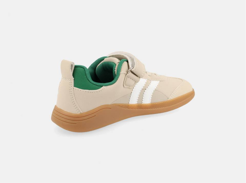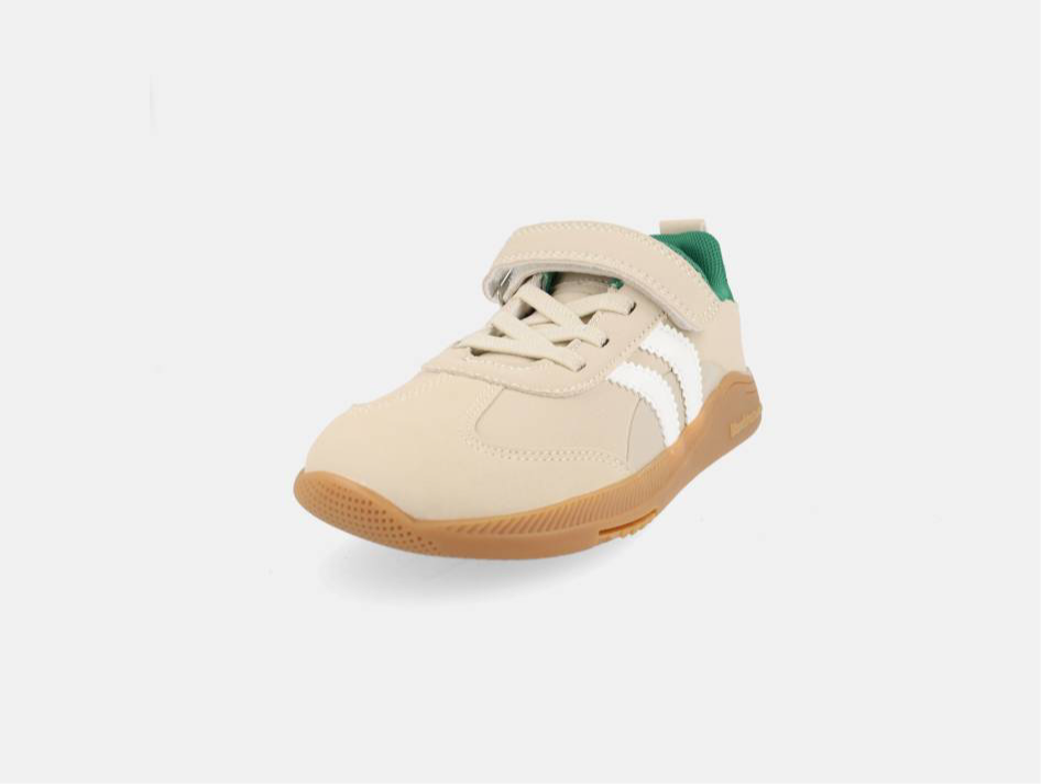 Fecha com velcro, facilitando o calçar e promovendo a autonomia das crianças. A palmilha é totalmente removível e sem elementos anatómicos.