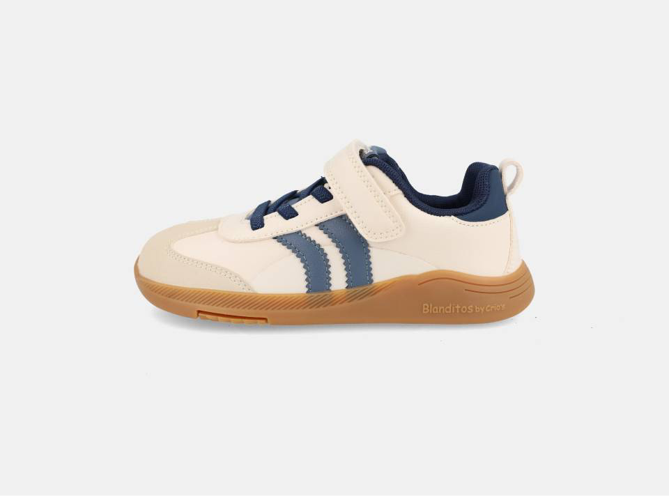 Fecha com velcro, facilitando o calçar e promovendo a autonomia das crianças. A palmilha é totalmente removível e sem elementos anatómicos.