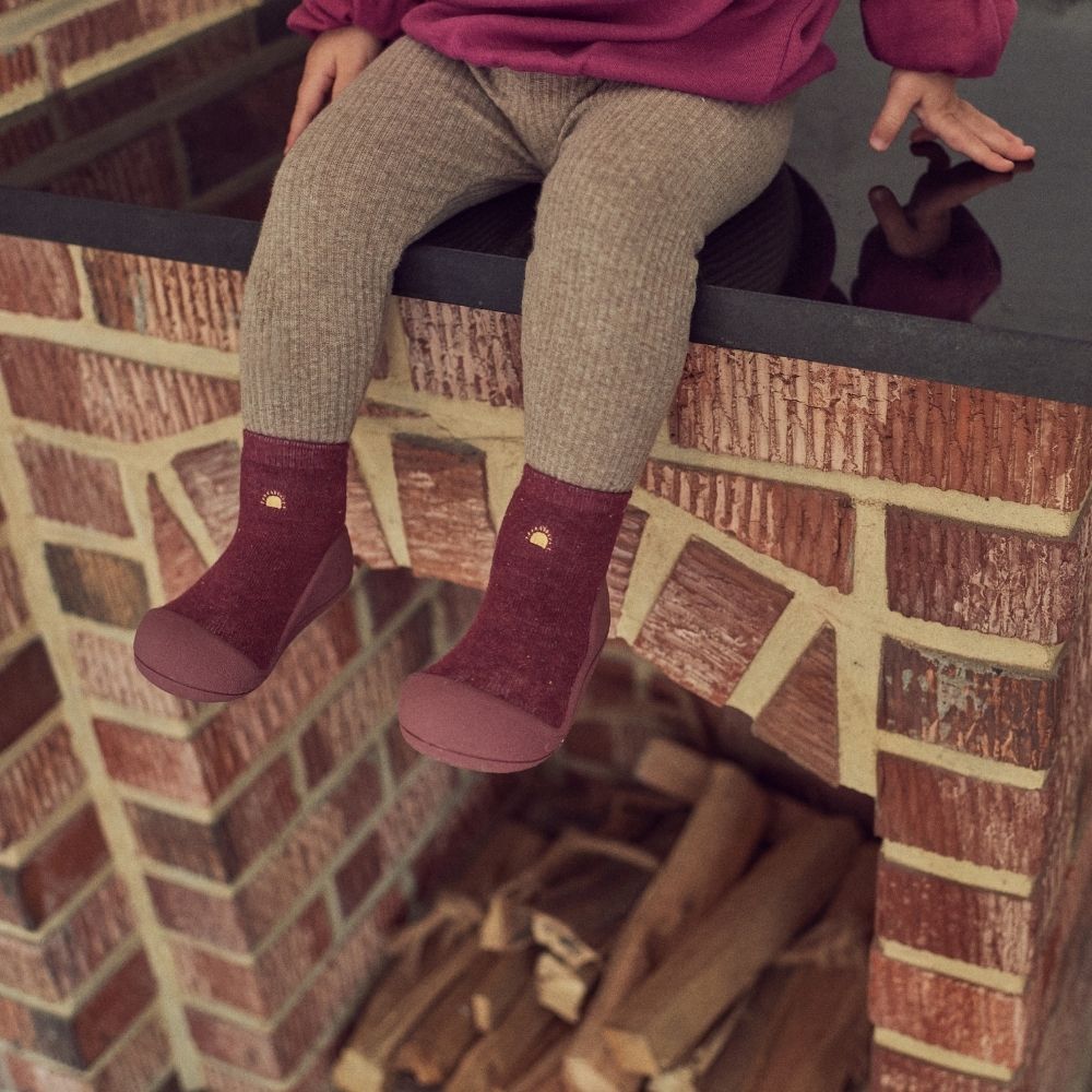 A sola, com apenas 2 mm, é respirável, muito leve e flexível, permitindo que a criança sinta tudo o que pisa.