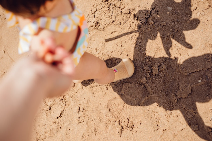 A sola, com apenas 2 mm, é respirável, muito leve e flexível, permitindo que a criança sinta tudo o que pisa. Modelo com meia de cano baixo.