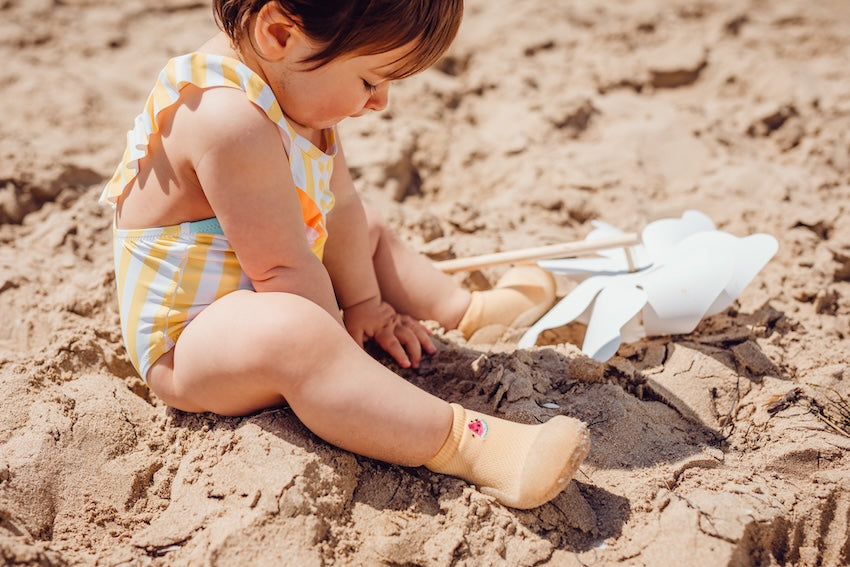 O modelo Cool Summer Yellow é confecionado com o tecido Aqua X, um tecido leve e fresco, pensado para os dias de calor e para as idas à praia ou piscina. Graças ao seu tecido reciclado de secagem rápida, oferecem respirabilidade e controlo da humidade, sendo uma opção confortável e sustentável tanto para a água como para o uso diário.