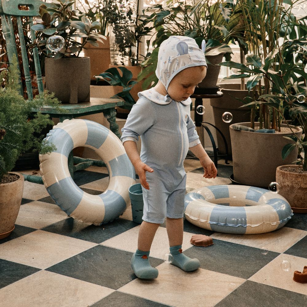 O modelo Sea Blue é confecionado com o tecido Aqua X, um tecido leve e fresco, pensado para os dias de calor e para as idas à praia ou piscina. Graças ao seu tecido reciclado de secagem rápida, oferecem respirabilidade e controlo da humidade, sendo uma opção confortável e sustentável tanto para a água como para o uso diário.