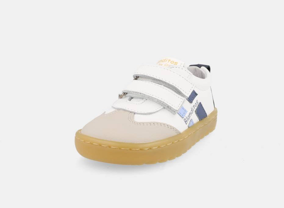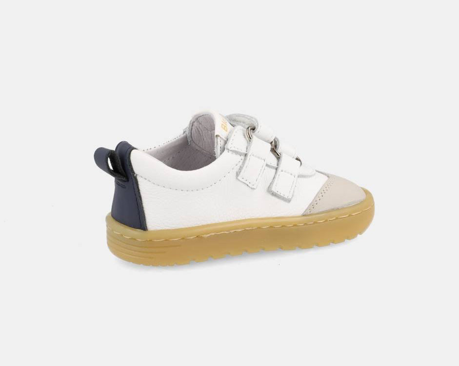 Fecha com duplo velcro, facilitando o calçar e promovendo a autonomia das crianças. A palmilha é totalmente removível e sem elementos anatómicos.