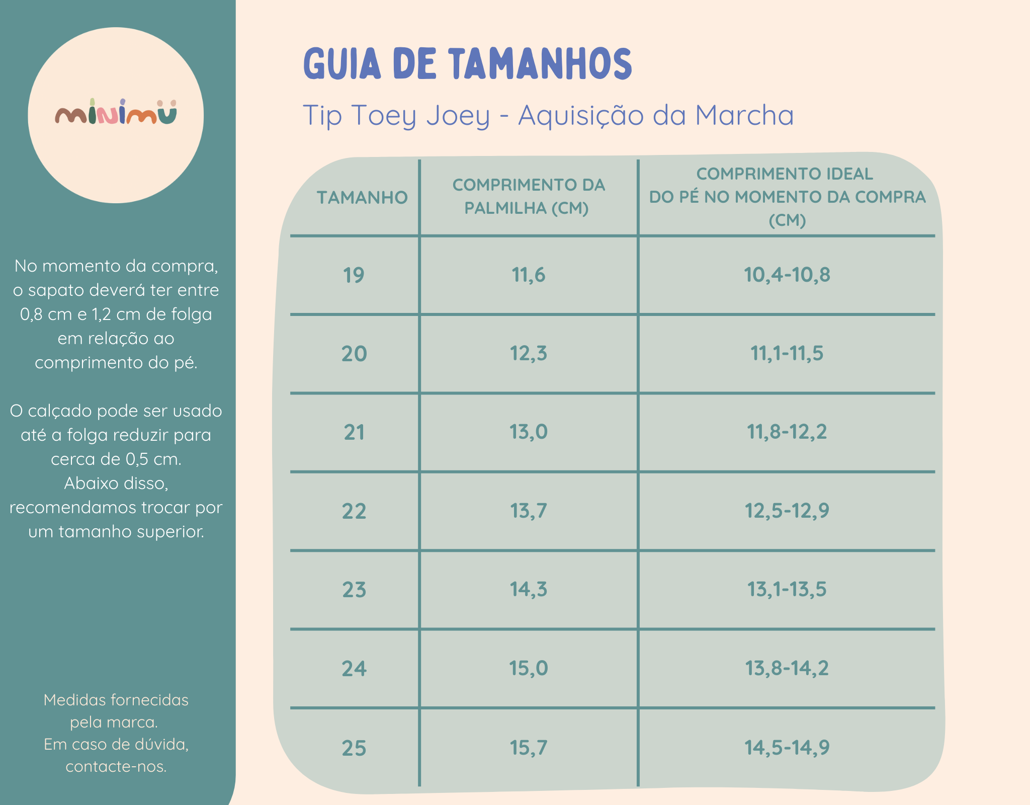 A numeração de outras marcas pode não corresponder à dos modelos Tip Toey Joey. Use sempre o guia de tamanhos de forma a escolher o número certo. Por vezes, a forma varia de modelo para modelo dentro da mesma marca, por isso recomendamos consultar sempre o guia disponível na página de cada produto.