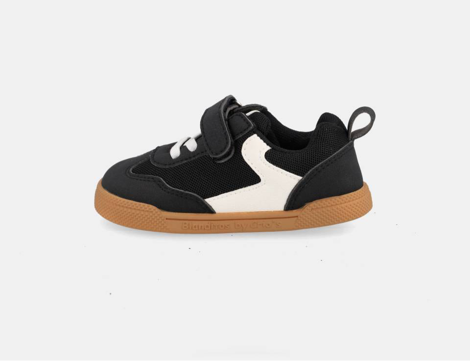 Fecha com velcro, facilitando o calçar e promovendo a autonomia das crianças. A palmilha é totalmente removível e sem elementos anatómicos.