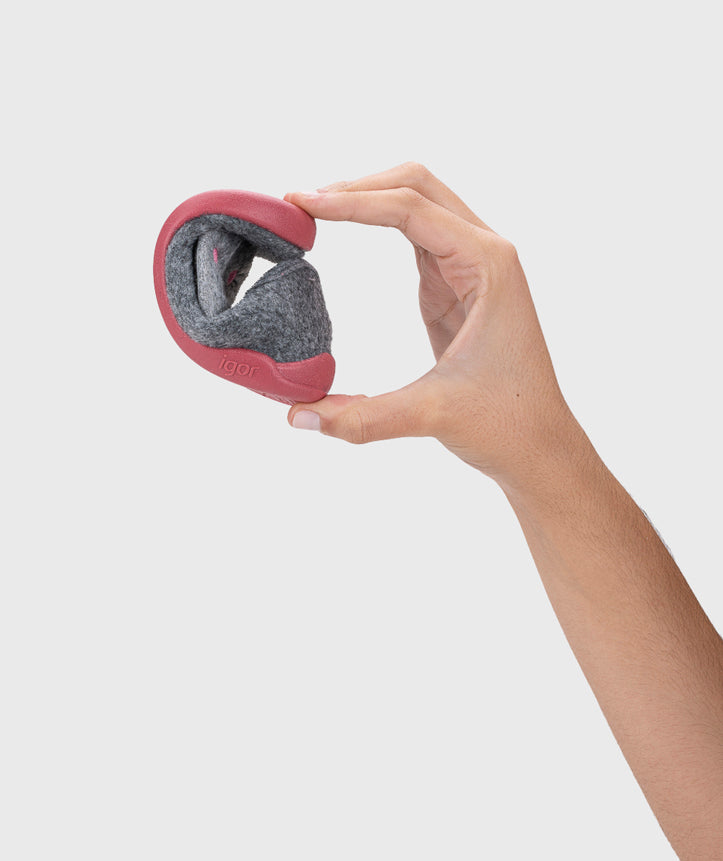 Estas pantufas foram desenhadas segundo o conceito barefoot medium: sola flexível e totalmente plana, sem qualquer desnível, para acompanhar o movimento natural dos pés.