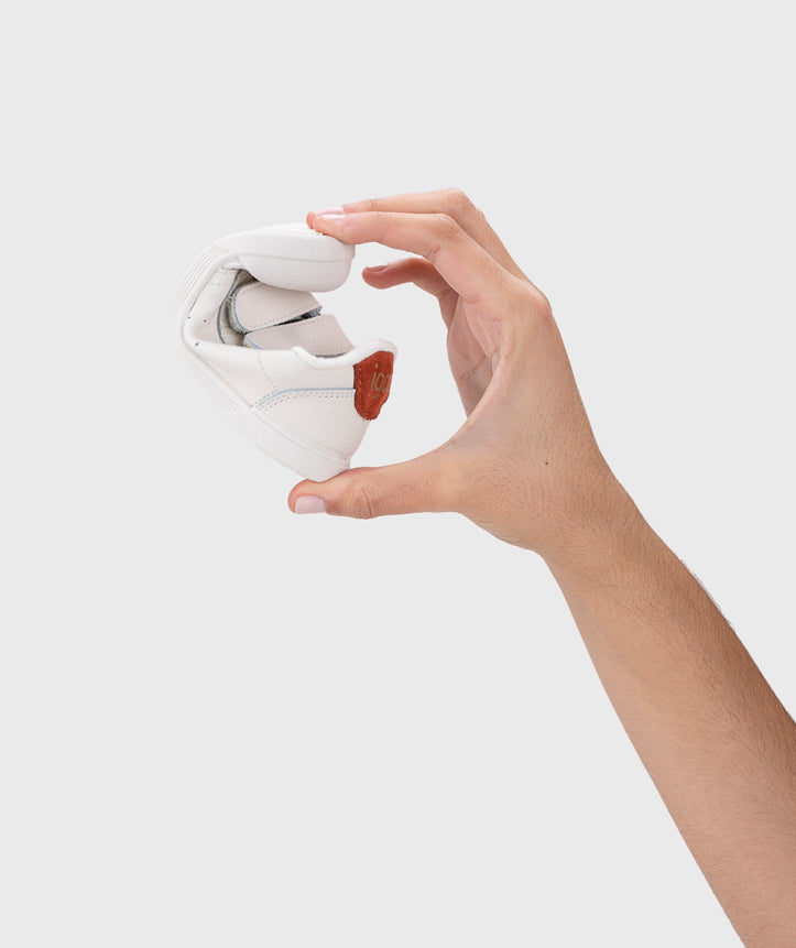 Estas sapatilhas em couro foram desenhadas segundo o conceito barefoot medium, com sola totalmente plana e flexível, que acompanha o movimento natural do pé.