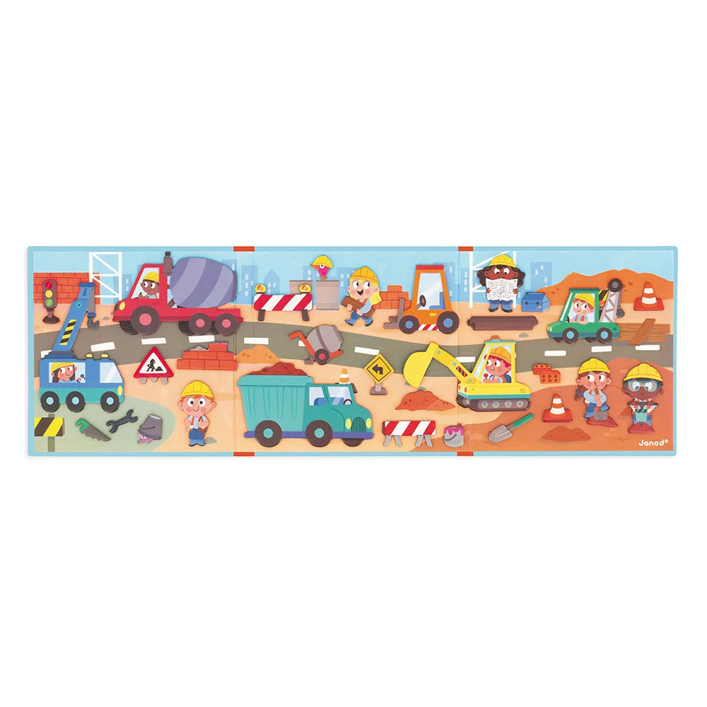Este jogo magnético é composto por um cenário magnético ilustrado, acompanhado por 30 peças magnéticas. O formato prático deste jogo com o tema da construção permite transportá-lo facilmente, para que a imaginação das crianças não tenham limites!