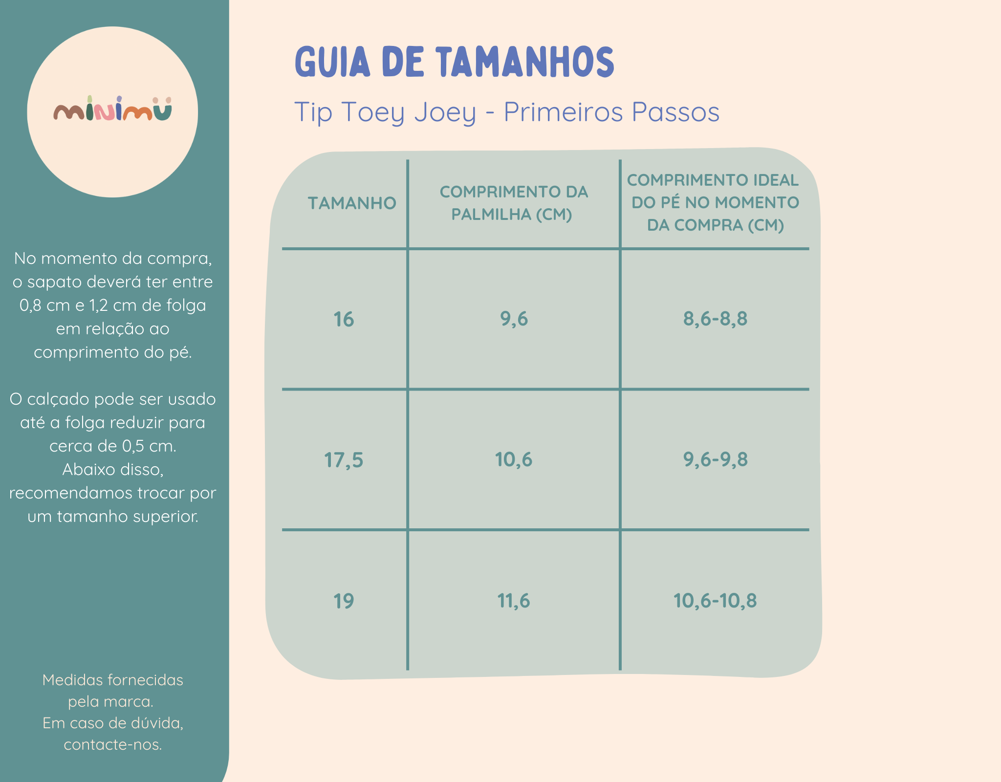 A numeração de outras marcas pode não corresponder à dos modelos Tip Toey Joey. Use sempre o guia de tamanhos de forma a escolher o número certo. Por vezes, a forma varia de modelo para modelo dentro da mesma marca, por isso recomendamos consultar sempre o guia disponível na página de cada produto.