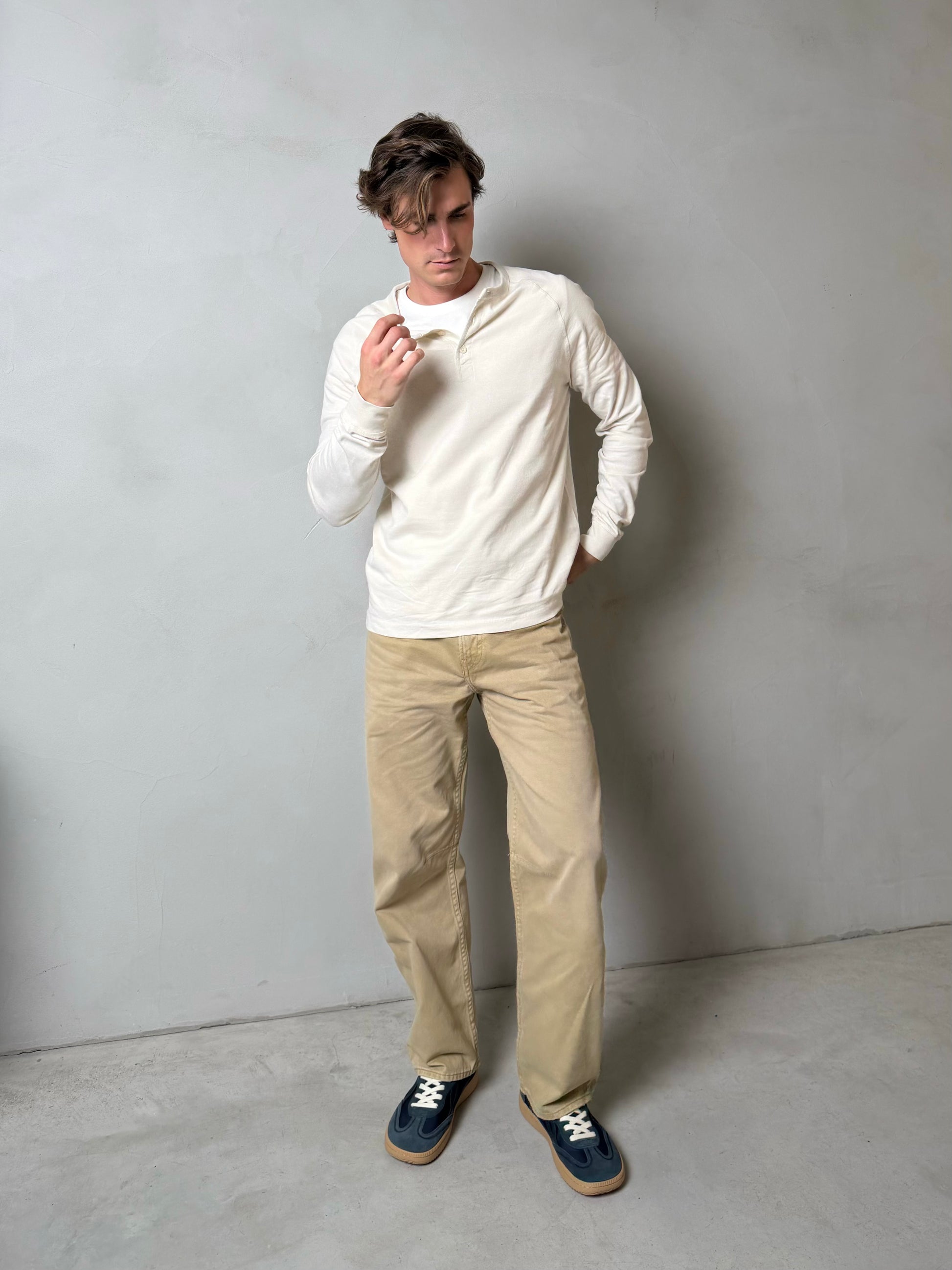 Exterior: Camurça e nylon – uma combinação que proporciona resistência e durabilidade, com um acabamento elegante.