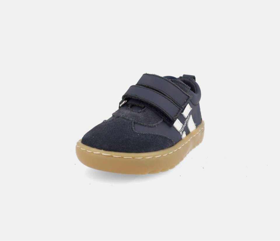 Fecha com duplo velcro, facilitando o calçar e promovendo a autonomia das crianças. A palmilha é totalmente removível e sem elementos anatómicos.