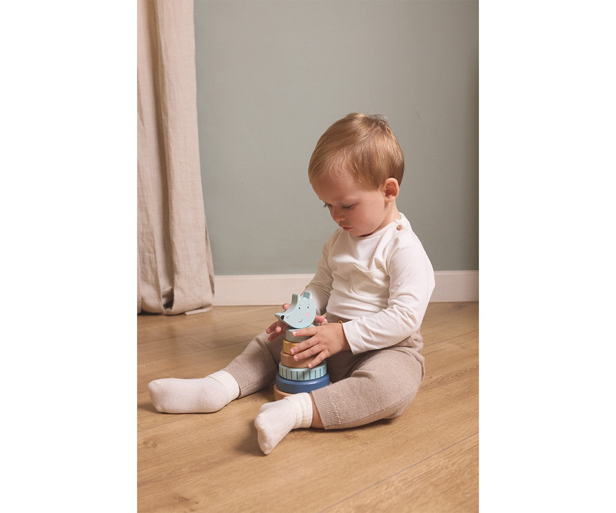 Uma encantadora torre empilhável em madeira, inspirada na história do Lobo Mau e 3 Porquinhos, que estimula a coordenação motora, a perceção de cores e o raciocínio das crianças. Feita com materiais sustentáveis e tintas seguras, é perfeita para brincar, aprender e decorar.