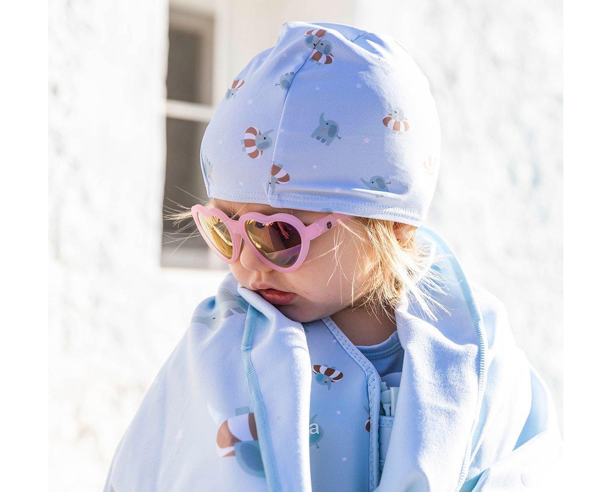 A touca de natação da Coleção Monnëka 2025, com proteção solar UV50+, adapta-se perfeitamente à cabeça dos mais pequenos graças ao seu tecido elástico e confortável.