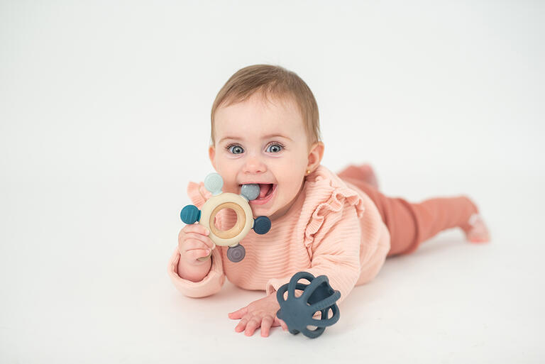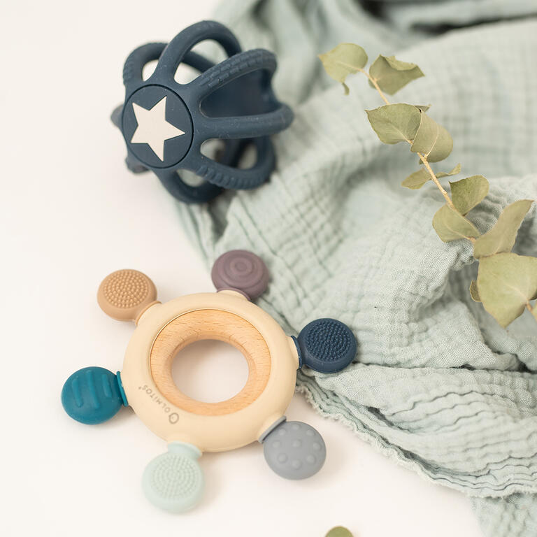 As suas diferentes texturas ajudam a aliviar as gengivas durante o período de dentição, ao mesmo tempo que estimulam a pega e a motricidade fina.