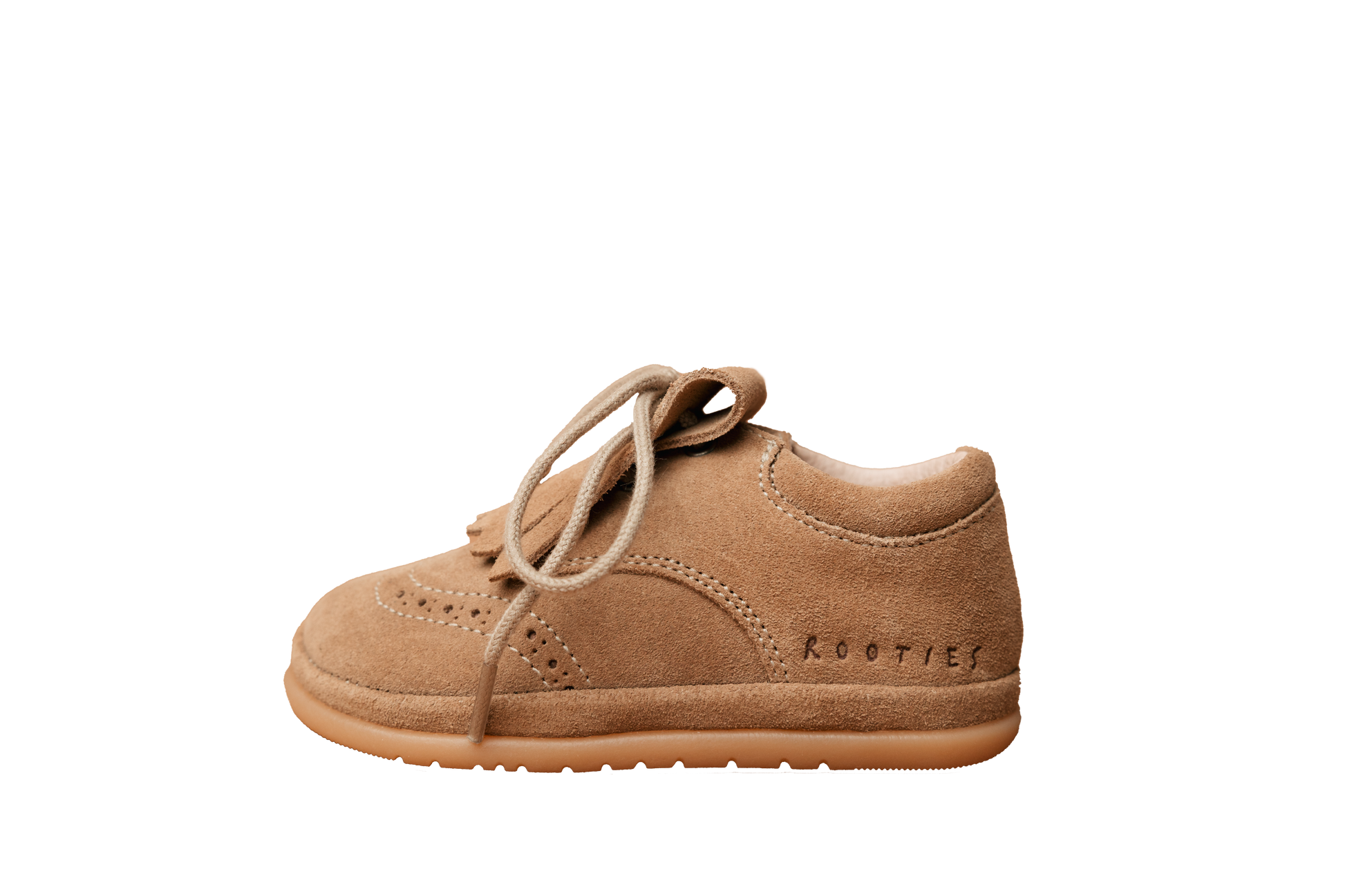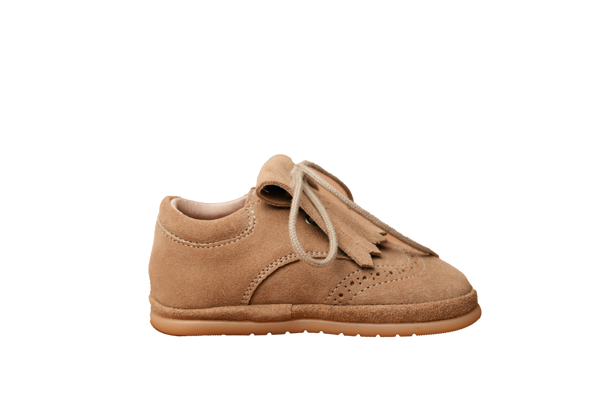Fabricadas em camurça na cor areia, com atacador e franja removível, permitem dois estilos num só sapato: com ou sem franja. Mantêm o design clássico e intemporal, mas incorporam todas as funcionalidades que respeitam o movimento natural do pé.