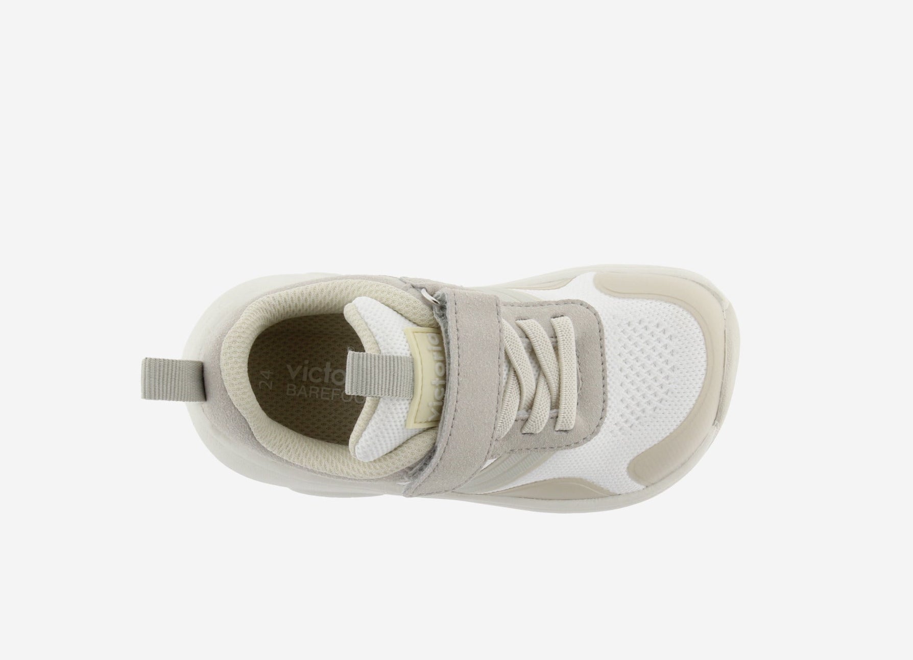 O modelo Kai da Victoria é um calçado barefoot leve e flexível, fabricado com um tecido em malha. O ajuste é feito com cordão elástico, complementado por uma tira aderente para facilitar o calçar e promovendo a autonomia das crianças. A palmilha é totalmente removível e sem elementos anatómicos.