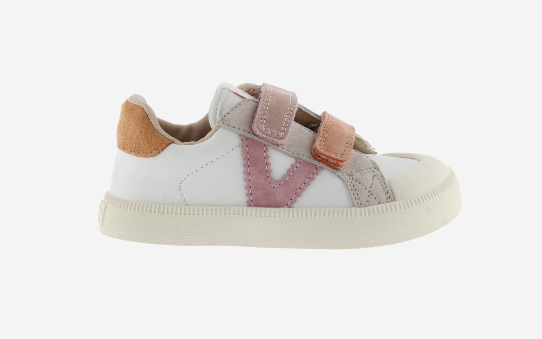 As sapatilhas desportivas Oliver da Victoria são fabricadas em pele sintética, com detalhes em camurça nas tiras, na parte traseira e no icónico V lateral. Apresenta uma sola flexível com uma espessura de 7 mm.