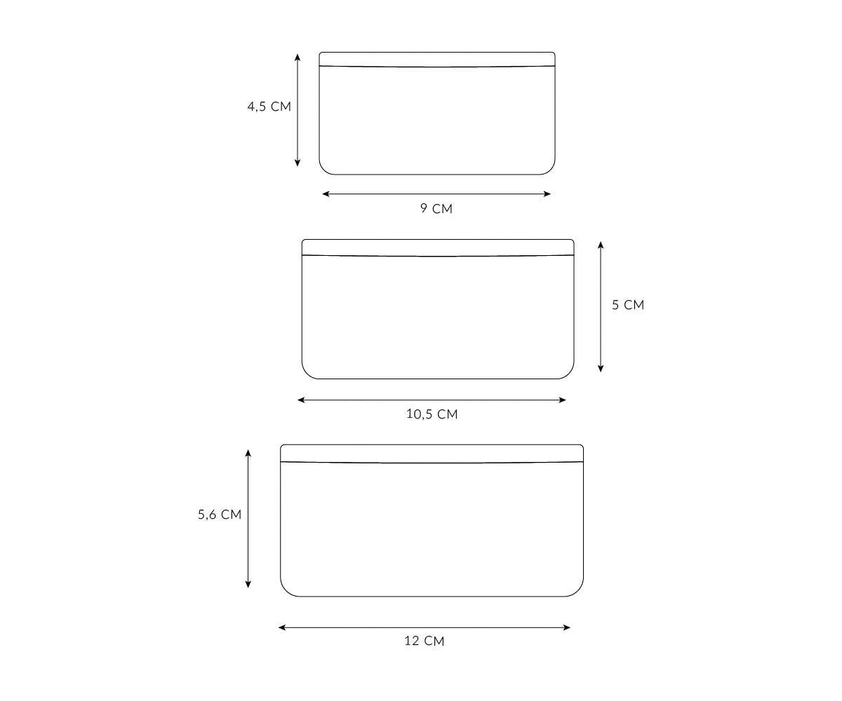 Pequeno: 9 cm x 9 cm x 4,5 cm